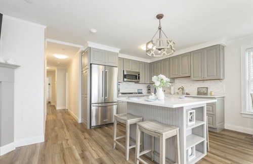 We truly love gathering at the large kitchen island to share a cocktail, enjoy meals, or play games together. The open floor plan and fully equipped kitchen make this home an easy choice for "dinner in". The private beach is only steps away and has ample room to lounge and enjoy the beautiful weather. For the health-conscious guest, Rory's Market and Kitchen is only 1 mile away - we love their "works" avocado toast, acai bowls, and fresh juices. For those days when only an ice cream will do - Sundae School is dangerously close! For delicious meals and the best service, the Ocean House is a short 700-ft walk away. The Rooftop at the Pelham House Resort is another great choice and is only 1/4 mile away. Last, but not least, we love lounging in the Adirondack chairs overlooking the ocean with a crisp glass of wine before dinner!