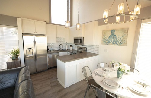 This is the right space for a refreshing beach getaway, surrounded by modern conveniences, such as free Wifi, an outdoor grill, flat screens, DVD players, and a washer and dryer.