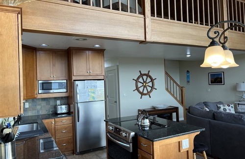 Amenities include a gas fireplace, sitting loft area with queen size hide-a-bed, wireless internet, TV in main living space, first floor TV room and upstairs bedroom, fully stocked and updated kitchen with eating island for family and social gatherings, partially wrapped deck on Ocean and North side of house, fishing/kayaking/crabbing along the Nestucca River.