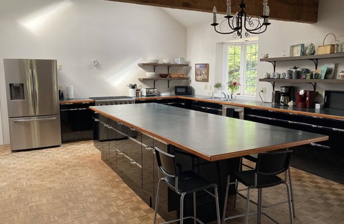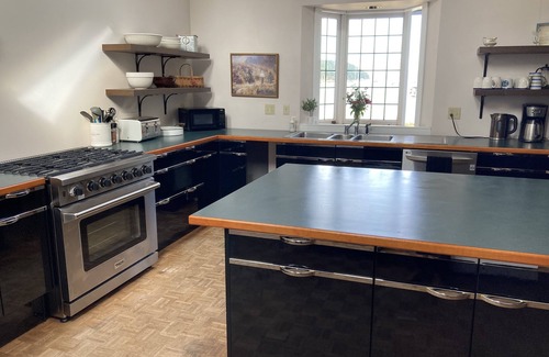 Large beach house on 10 acres, all bedrooms have an ocean view. We have 650' of ocean front that you can just walk out onto the small pebble beach. Swimmable bay. The house is well setup for a large family, especially the giant kitchen!