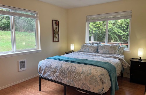 Ocean Lodge with beach access on a charming ranch! Hot tub and kayaks available. Escape to a cozy lodge in Shelton and unwind in this adorable 1-bedroom retreat. Snuggle up in the queen bed or relax in the jetted bathtub after a day of exploring. With WiFi and heating, you'll have everything you need for a comfortable stay. The living room with a sofa bed offers extra space for guests. Experience a phenomenal getaway at this awesome cabin - your perfect home away from home. We'll be available to answer any questions while you stay at our place.