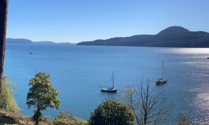 Ocean-front condo with 3 ocean-facing balconies you won't want to leave. Gorgeous views, sunsets, just a few minutes walk into Moran State Park, Rosario Marina, and just a 10 minute drive to town. Sleep in comfort with one king bed in one bedroom, and 2 queens in another, both with their own en suite bathrooms.