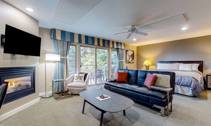 It's glorious to begin each day here, deciding whether to spend it hiking, kayaking, whale watching, or taking a scenic drive. There's no kitchen, but you can prepare a simple breakfast using the mini-fridge, convection oven, and coffee maker. In the afternoon, come home to sip a glass of wine on your balcony, plan tomorrow's hike using the complimentary WiFi, or watch a favorite movie in the warmth of the fireplace. And although there is no washer/dryer, a well-maintained laundromat awaits in town.