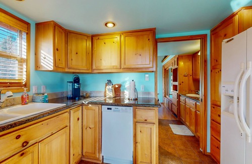 This single-story home sits across the Oregon Coast Highway and up the hill from Whaleshead Beach, an elevated position which grants it gorgeous sunset views. Spend your days going for long scenic drives, hiking the Oregon Coast Trail, and taking photographs of dramatic sea stacks and deserted ocean coves. Such notable landmarks as Harris Beach State Park, Cape Ferrelo, the Thomas Creek Bridge, Natural Bridges, and Arch Rock State Park are all within seven miles.