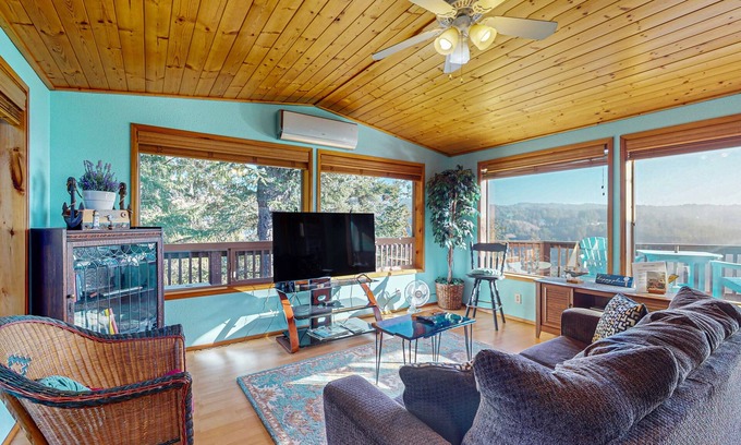 Step out onto the deck, breathe in the salty sea air, and greet each day with a sweeping view of the ocean and mountains at this comfortable home in Brookings. In this beautiful spot in the heart of the Samuel H. Boardman State Scenic Corridor, you'll have the most picturesque stretch of the Oregon Coast right outside your door.