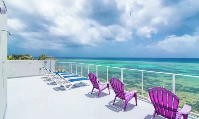 Oceanfront property with beauty all around. Walk right out your backdoor and into crystal clear water. Snorkeling, paddle boarding, kayaking, and more can be experienced steps away from home. Nearby are grocery stores, restaurants, and bars, as well as the famous attraction, the Cayman Crystal Caves. The house is bright and full of space. Four bedrooms all have attached bathrooms. YOU WILL NOT FORGET THE ROOFTOP. Plenty of outdoor furniture to sit back, relax, and enjoy the views from Ocean's Edge