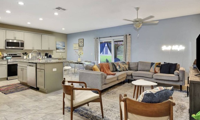 As you enter the townhomes, you'll be greeted by a spacious and inviting atmosphere. The open-plan living areas are perfect for socializing and spending quality time together. Relax in the comfortable seating arrangements as you watch your favorite shows on the large flat-screen TVs, or simply unwind with a good book.