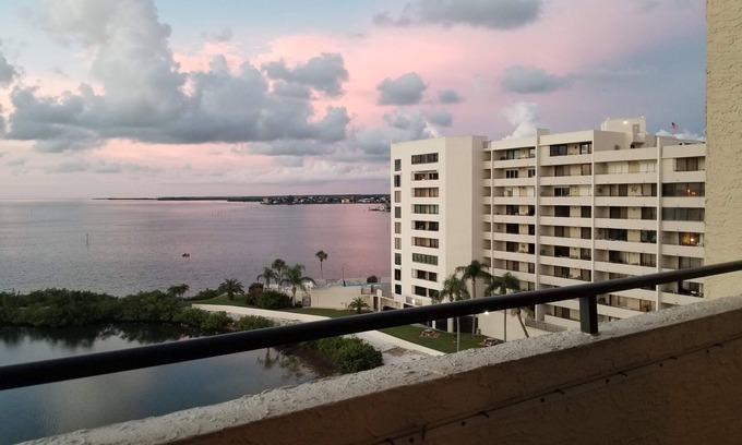 Open floor plan in 7th floor Island luxury Condo with views of the Gulf of Mexico from every window. See Dolphins playing in the private lagoon, swim in the heated salt-water pool, kayak, hike the nature trail, explore nearby Hudson Beach, feast at nearby excellent restaurants or create your own culinary masterpiece in our fully equipped kitchen. After watching the gorgeous sunsets (wine in hand) from the open-air balcony, sleep soundly on either the king or queen adjustable-base beds. Separate bathrooms for each couple, with laundry in 2nd bedroom. A quiet, laid-back, friendly place to rest and rejuvenate from the hustle of the everyday. This is our home for as much of the year as we can spend here, but for the rest of the time we welcome you to come enjoy it as much as we do. Please note, this is a NO PETS home. If you cannot travel without your fur baby, please choose another place in Gulf Island, as this condo is specially reserved as pet-free.