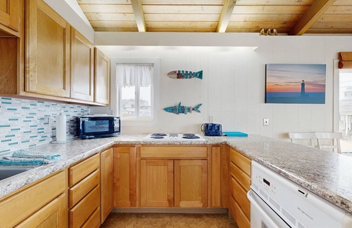 On warm weather days, crack open a favorite beverage and head onto the outdoor balcony to enjoy the invigorating sights and sounds of the coast; listen to seagulls caw and watch thundering waves pound against the shoreline. When you get hungry, head back inside to whip up a homemade meal in the well-stocked kitchen. Use modern appliances, ample granite countertops, and plenty of cookware to prepare fresh dishes with ease. Share meals and lively conversation at the table, or dine alfresco on the deck.
