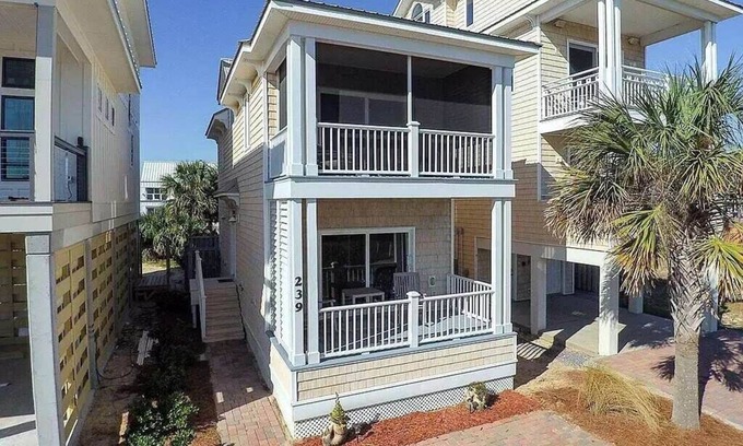 Island Bliss has 2 bedrooms and 2.5 bathrooms and a very short easy walk to the beach access (about 250 feet). After a fun day at the beach, retreat to your private fenced backyard complete with a charcoal grill, firepit, and hot tub. The backyard is perfect for family gatherings and cookout's.