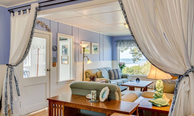 Sweet Homes Vacation Getaways brings you this this quaint beach cottage! Built in 1936 and thoughtfully remodeled over time to retain the original historic charm, this quaint, 2 story beach cottage welcomes you with whimsical art glass and fun touches. Abalone Beach Cottage offers a comfortable floor plan that sleeps up to 6 guests, with 4 bedrooms and 1.5 baths providing the ultimate in peace and relaxation. You will love the dramatic beach and ocean views. Open the windows, hear the waves and sleep to the rhythmic sound of the surf. Whether watching whales or waves, sunrises or our famous Oregon coast storms, this home is perfect for a family vacation or a romantic getaway.