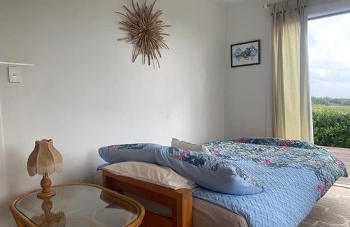 The Orange Door bach is a true jewel set in the crown that is Opunake. Opunake is on Surf Highway 45 at the base of Mount Taranaki with world class surfing, fishing, and hiking. Our property sits on the bluff over-looking the ocean and at the end of a quiet cul de sac. This house is our holiday home and we'd love to share it with you. We are a vegetarian house and welcome like-minded guests who want a truly unique place to relax and enjoy the huge ocean views.