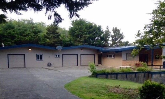 PRIVATE AND ISOLATED. NO SHARED SPACE WITH THOSE OUTSIDE YOUR PARTY. Panoramic ocean view. Aha Lodge boasts 3500 sq. ft house on 1.3 acres. A rare find - Rent your own lodge! 7 bedrooms. 3 1/2 baths. Full kitchen/2 full laundry areas. Huge 30 X 20 great room and a second separate family room. Main floor is handicap friendly. Tremendous for family reunions, retreats. training sessions, hobbyists (quilters etc). Yachats is beautiful little town at foot of mountains nestled along Pacific Ocean. We are near Cape Perpetua, Devil's Cove, trails, beaches, fishing, sightseeing, shopping and dining. Oregon is awesome. Wildly beautiful. Please note my property can hold total 18 individuals.