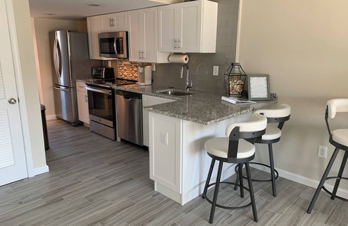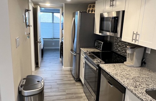 Unit is fully equipped with everything you need to cook a meal, blend or shake a beverage, bake a dessert or scoop ice cream. Full size kitchen appliances, full size washer and dryer, and an X-Large grill to BBQ your favorites. Convenient walk to local restaurants and bars.