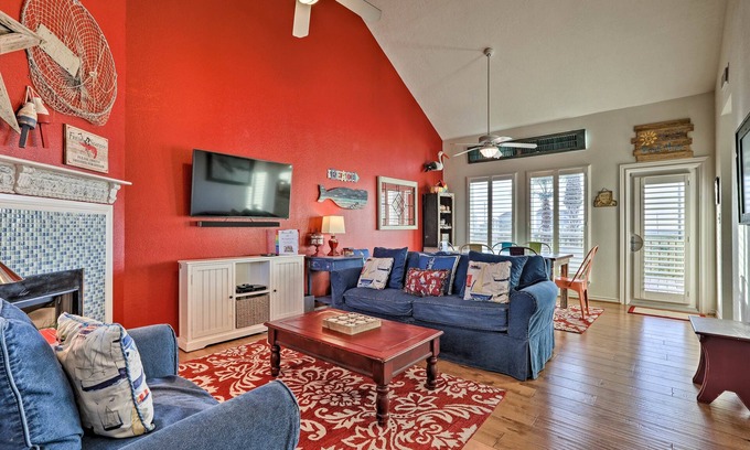 INDOOR LIVING: Hardwood floors, decorative fireplace, 2 flat-screen Smart TVs w/ free Netflix & Sling TV, natural sunlight, updated interior, vibrant colors, beach-themed furnishings
