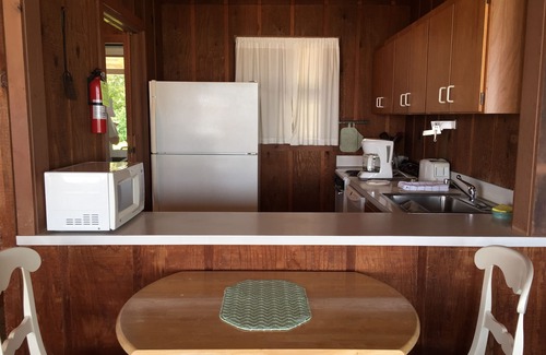* Large efficiency unit with twin beds, bathroom, kitchen, and raised deck.