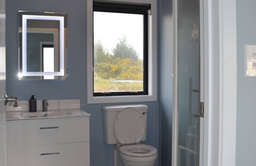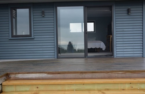 This studio apartment is situated on a sunny hillside and has the perfect view of the ocean waves nearby. It is close to town (5 minute drive away) and yet has a relaxing country outlook. The apartment is new and modern and has all that is needed for a cozy stay. It has plenty of space for living and has an easy indoor-outdoor flow with a private deck outside with outdoor furniture ready to be used. The apartment is ajoined to a house.