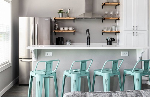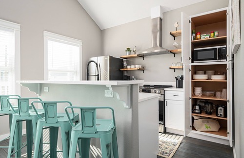 Nauti Bird Bungalow is a stylish newer home minutes from the beach. The open concept space features natural light throughout and has a well-equipped kitchen with stainless steel appliances. The main living room has Queen Sleeper Sofa and two armchairs, as well as a 50-inch ROKU TV (live ROKU & streaming only) and ceiling fan. Board games and birding books/binoculars are also in the living room for you to enjoy! Bedroom 1 features a king size bed (with a medium hybrid mattress), dresser & side tables/lamps, ceiling fan, 32 inch ROKU TV (live ROKU & streaming only) and private bath (tub/shower combo). Bedroom 2 features a Queen size bed (with a medium hybrid mattress), dresser & side tables/lamps, ceiling fan, 32 inch ROKU TV (live ROKU & streaming only) and private bath (tub/shower combo). Relax on the front deck with four Adirondack chairs and two side tables. Hangout below the house with a charcoal grill, cornhole boards/bags, picnic table, generous overhead lighting. Want to head to the beach? It's approximately 400 yards away. Pack up the beach wagon with beach chairs/umbrellas, boogie board and soft sided cooler and head across the road to the beach! Extra towels upstairs and a shower (hot/cold water) below the house to wash off.