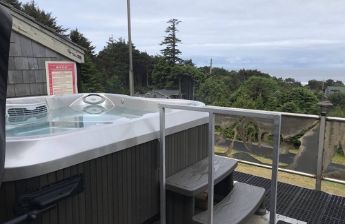 The Mermaid sleeps 6, offers a full kitchen, 2 full bathrooms, washer/dryer, large upper and lower decks, and a hot tub with an ocean view.