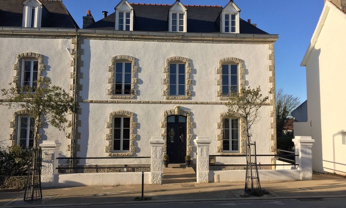 Exceptional large Villa, completely renovated in 2016, comfortable, 100 meters from the main beach of the great sand, historic place of great painters (Gauguin, De Haan, Sérusier ...), 2 other nearby beaches including one for Surfers, Kerou beach. The villa is located where the painters Gauguin and Meyer de Haan among others lived. Starting point for many hiking trails, painters 'and customs officers' path. A large comfortable living / dining room for making large meals, 3 bathrooms. The 1912 villa is classified as a heritage site. Soundproofing has been carried out, a fireplace has been installed in order to also take advantage of the beauty of winter evenings and sublime stormy days. Private parking in the back for 5 cars.