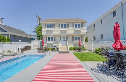 Enjoy the beach life you always imagined. A charming fully-equipped house with modern amenities a half block to the beautiful Belmar beaches....your own heated salt-water pool & outdoor shower....fabulous bbq's on the patio......beautiful sunsets....4 beach badges included.....parking on-site for 3 vehicles. Quiet, private, and spacious....Belmar's desirable North End...faces iconic Silver Lake with walking/bike path..... a half-block to Taylor Pavilion's with its amenities.....close to Shark River fishing and the bridge to Avon.....a spacious private high-end property with proximity to Belmar's lively Jersey shore life. Give yourself the vacation you deserve.