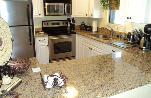 This beautifully appointed and spacious 2 bedroom,2 bath oceanfront condo sleeps 4., offers beautiful views of the ocean and river, and is furnished with decorator furnishings in the 'West Indies' style . It features a custom kitchen with stainless steel appliances, microwave, a Keurig ,granite counter tops, and Pergo flooring throughout., two TVs, and wi-fi. Situated on a private beach amid lush plantings, the balcony overlooks the ocean and a sparkling heated pool and poolside fountain. You will marvel at the splendid views from the balcony , dining room, and kitchen.