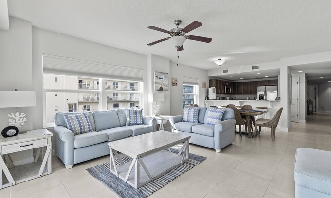 Welcome to Daytona Aruba 206. Enjoy gorgeous ocean AND river views! Located within Daytona Beach's newest luxury rental condo. A 4-bedroom 3-bathroom condo that sleeps 10 guests comfortably. The primary bedroom has a king bed, and all 3 guest bedrooms have queen beds in them. You will also find a sleeper sofa in the living room. The newly updated and fully stocked kitchen is outfitted with all stainless-steel appliances so you can cook up your favorite meals. After a long day out on the beach, relax on the couch and watch your favorite movie with your loved ones, or step outside to the expansive balcony where you can sit and enjoy the view of the ocean. Come start making memories at Daytona Aruba 206 that will last a lifetime.