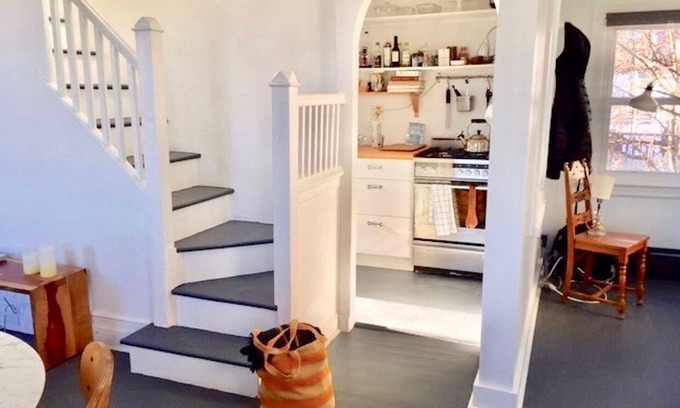 The 2 story bungalow comes with 2 bedrooms, 1 bathroom, and a sun-drenched deck. Beautifully furnished with everything you'll need for your stay including a full kitchen, linen, beach towels, beach chairs, and umbrella + sound system and an enclosed outdoor shower and courtyard with picnic table and benches. The house is extremely light, airy, and peaceful with ocean views from the living/dining area and master bedroom, and glimpses from the 2nd bedroom. There are 16 windows throughout letting the sea breeze in and a sun trap for the winter months. The bathroom is small and clean with a deep freestanding claw tub/shower.