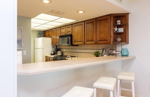 With a few short steps, you can feel the soft sand between your toes and the gentle waves lapping at your feet, as the condo offers an unobstructed view of the ocean. Spend your days hunting for seashells or shark teeth, tossing a ball or frisbee, dropping in a fishing line, or simply relaxing and soaking up the sun. If you need a break from the sand, take a refreshing dip in the pool or enjoy a game of tennis.