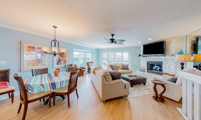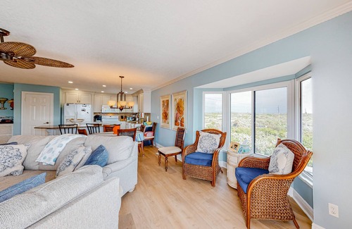 Find an open floor plan layout inside this cheerful and colorful condo. Lounging will come easy on the soft sofas in front of the large TV. Cook amongst the ample meal prep space in the well-equipped kitchen and serve your culinary creations at the breakfast bar, dining table, or alfresco on the sun-drenched, ocean-view patio. The true showstopper of your retreat: start your mornings with a walk to the beach, watching the sunrise. Then step out the back door to take in the views of Ponce Preserve from the third-floor deck. Additional interior perks include a private washer/dryer and central air-conditioning.