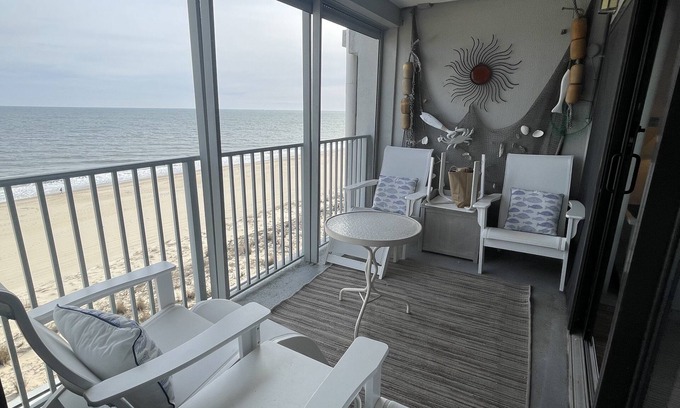 Oceanfront Corner Unit, Spectacular Views, Pool, W/D, 2 Parking, Full Linen Svc | Condo in Ocean City
