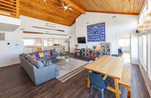 This large, trendy beach house comfortably accommodates up to 16 people. When you enter the home you are greeted by an abundance of hip & beachy chic decor. There are 5 spacious bedrooms on the main level of the home and a great kids loft bedroom on the third level. The kitchen is well- equipped for large family- style meals and the Great Room has a large, comfortable sectional sofa with bright accents. Everyone will love gathering in the garage game room in the evening for ping pong and pool! Who doesn't love a little family friendly competition! This home is vacation rental ready! Don't hesitate to make the Sunrose House your vacation destination for years to come!