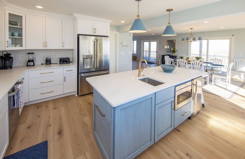 Ebb's is the place to be for your vacation! This custom home is newly renovated and updated for 2025! Amenities include: Oceanfront with direct beach access and spectacular views, fenced in-ground swimming pool, elevator, sauna, family room on the first floor that includes a large flat screen TV, a kitchenette with a full sized refrigerator and microwave, and outside access to the pool, full kitchen on the second floor with custom cabinets and countertops, 2 dishwashers and an island for additional food prep space. The primary suite includes a King-sized bed, walk-in closet, wet bar with beverage cooler, and an attached bath with double vanity and walk-in shower. Ebb's has four Queen bedrooms each with adjoining baths. The children's room features two Twin/Twin bunksets and a Twin with a pull out trundle. More details and photos to follow.
