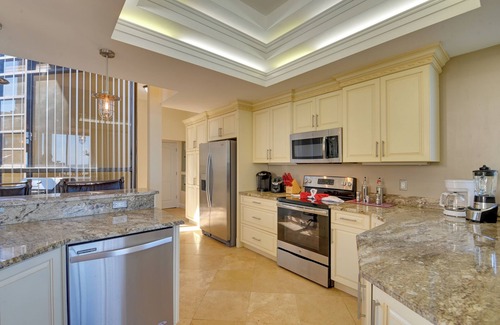 - 3 flat-screen TVs, 75" flat-screen TV, cable