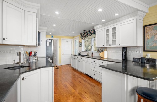 Through the sliding glass door off the kitchen, you will find seating on a huge, covered porch overlooking the sandy shores of Sagamore Beach. The perfect spot for your morning coffee. Unwind on the newly remodeled TREX deck and enjoy the water views.