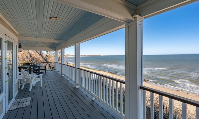 Oceanfront home on Sagamore Beach with panoramic views of Cape Cod Bay, sleeps 10 | House in Bourne