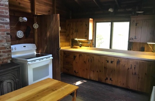 The entire place is beautiful and rustic. With the exception of the additions of modern appliances and other amenities (including very-fast 1Gps wifi) the experience of staying there has not changed much since my grandfather bought it 85 years ago. The floorplan is open and large, with soaring ceilings over living and dining areas, a big stone fireplace, and a huge and comfortable dining table. In the main cabin two of the bedrooms have queen beds while the other bedroom has bunk beds of full/queen size (custom size close to queen) as well as a twin bed. There are two bathrooms in the main cabin; one has a shower and one has a bathtub. The kitchen is large with a full set of appliances and plenty of counter space. There is an additional small sleeping cabin with a queen bed and half-bathroom. The property has a deep-water dock and a guest mooring which will hold boats up to 70'