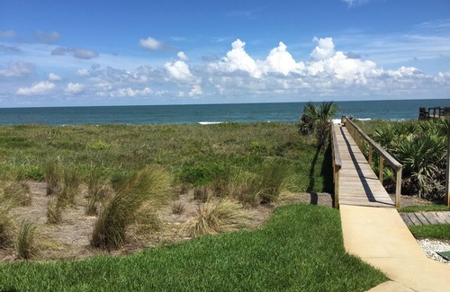 Kick off your shoes and forget your workday worries. This oceanfront condo looks out onto quiet, never-crowded Vilano Beach. On the first floor, you simply have to slide open the lanai doors, grab a beach towel, take a few steps across the dune boardwalk, and sink your toes into one of Florida's nicest shelling beaches. If you're an early-bird, enjoy an early morning cup of coffee on the boardwalk sitting area and watch the sun rise and the dolphins play.