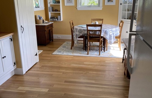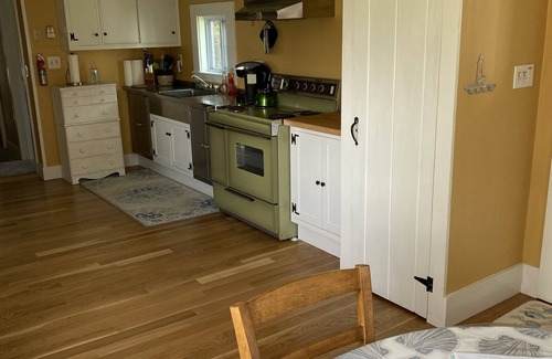 This little gem of a cottage offers a true coastal Maine stay with a private beach just 50 feet from the porch. A Sea Glass Beach Retreat is located on the desired and beloved Pemaquid Trail. It is one of the first cottages built on the trail with a cathedral style pinewood living room with open loft. Here, you can sit and relax on the adirondack chairs while sipping your morning coffee and watch the lobsterman haul in their traps from John’s Bay. During the day, take in local attractions such as visiting the Pemaquid Lighthouse, board the Hardy Boat Puffin cruise off the famous Shaw’s Fish & Lobster Wharf, unwind at the sandy Pemaquid Beach or spend your day collecting sea glass, rocks and shells from your own private pebble beach. A child’s paradise. Visits to nearby coastal towns of Damariscotta, Boothbay Harbor, Wiscasset and Camden are always fun too! Make sure to return to your cottage to catch glimpses of seals sunning themselves on the rocks at low tide and witness breathtaking sunsets. Fall asleep to the sounds of the waves.