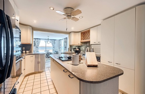 The house boasts an oversized living room which is open to the dining area, a fully equipped kitchen, and fabulous sun room. There is a first floor bedroom with king size bed (and tv), and laundry on the main floor also. Upstairs are 3 nicely sized bedrooms (2 king size 1 queen) that share the 2nd full bathroom.