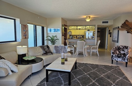LARGER than most two bedroom condos! DIRECT OCEANFRONT with TWO balconies. Master suite with KING SIZE bed and walk-in closet. The private master bath features a LARGE SOAKING tub with shower. All tile floors (decorative area rugs) for those allergy sufferers!