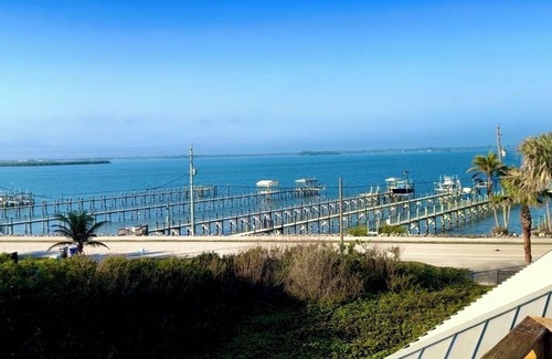 Ocean Front surrounded by Water: Property is Direct Oceanfront, Living room, Dining and kitchen face the Ocean. Bedrooms face the River/Bay of Indian River Lagoon. Rooftop sundeck, Beach dune top sundeck, wrap around balconies, and Boat dock all with direct water views. Ask how to Save 20% when booking multi week vacations and nearly 40% monthly