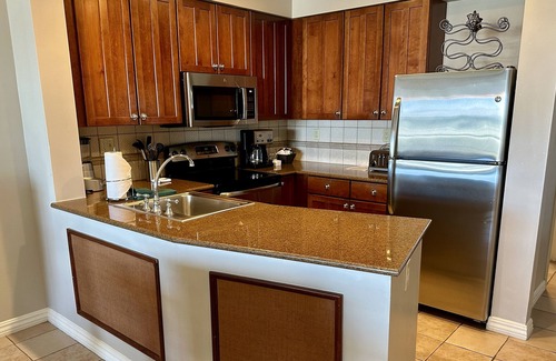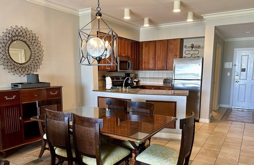 Cherish the lavish plantation-style décor while taking advantage of the convenience offered by a fully equipped kitchen, dining area, living room, 3 flat screen TVs, DVD player, private furnished balcony, heated infinity edge pool, and hot tub, BBQ grills, pool bar/ grille, etc. Complimentary Wi-Fi access, in-room washer and dryer, and on-site parking are also included.