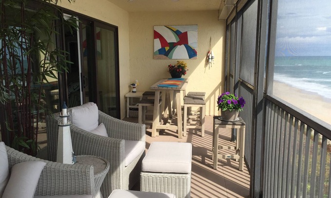 Oceanfront-Spectacular-Newly Furnished-Beautiful—Surf-side ambience-safe+secure! is located in Melbourne Beach. Oceanfront-Spectacular-Newly Furnished-Beautiful—Surf-side ambience-safe+secure! provides accommodation, featuring Ocean View, Balcony/Terrace, Accessibility, among other amenities. This Condo features Ocean View, Balcony/Terrace, Accessibility, to make your stay a comfortable one.