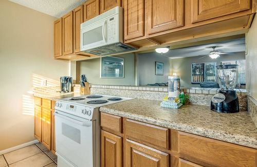 Sugar Beach Townhome D13 is quaint and perfect for your beach getaway! This affordable townhouse is set up for comfort. With plenty of sleeping options available in both bedrooms along with a TV, a sleeper sofa in the main living space, and a rollaway bed in each bedroom, you'll be able to bring all your friends! There is free wireless internet and a soundbar enjoy music as you sit on the back patio and relax. The patio now features brand-new furniture! Take advantage of the table and chairs to enjoy a meal you created in the fully equipped kitchen. Start your morning with a cup of coffee and take in the breeze. The smart TV in the main living space ensures you'll be entertained.