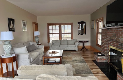 Oceanfront spacious four bedroom, 3.5 bath home with full dining room, large well-equipped kitchen with Viking refrigerator, Bosch dishwasher which opens to a family room with enormous deck overlooking Hart Island. The whole group will be comfortable in this spacious and unique space.
