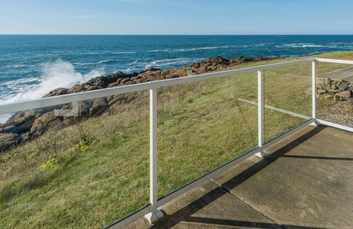 Watch the whales and boats year round from this luxurious north end-unit condo, just as its name states, Whale Watch, our first floor condo in Depoe Bay, the "Whale Watching Capital of the World". This elevated condo sits on the Northern side of The Village at North Pointe complex and features easy-access from the first-level of the complex, with a unique balcony on the oceanside so close to the ocean you will feel you can touch the waves!