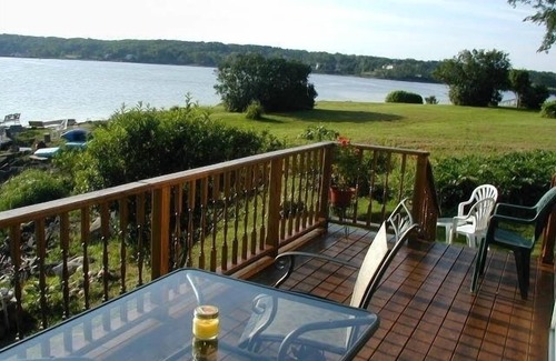 Oceanfront, 1 bedroom in Owl's Head. Spectacular views of Penobscot Bay, Rockland Breakwater Lighthouse and major offshore islands. Minutes from beaches, ferries, museums, art galleries, tall ships/charters, lakes, shopping, Rockport, and Camden. Excellent local restaurants. Numerous festivals during Summer season. Watch the ships and sunrise from the deck right at water's edge. Bring your own canoe and put it in! Quiet dead end street .I mile from town.