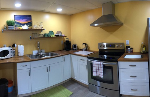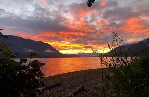 Captain and the Chef Oceanside Beach Retreat is located on a lovely quiet pebble beach on Neurosis Inlet with a spectacular view up and down the Inlet. New listing fall of 2022. If you're looking to unwind and be surrounded by the breathtaking beauty of nature but enjoy the comforts of home, we have the place for you. Our brand new and fully stocked kitchen will make your meal preps easy to do. If it's your lucky day you will see and hear humpbacks or orca's while enjoying the view from our beautiful and peaceful big back yard. You can meditate or stretch out on our yoga platform next to the ocean where you can also enjoy breakfast, a firepit to stay warm during an evening of stargazing, a BBQ, and conveniently located within walking distance to all amenities offered in the Village of Port Alice as well as hiking trails and our incredible Village sea walk. We are also a short drive to many lakes, rivers and special attractions. Relaxation and/or adventure, your choice. Your suite has A/C.