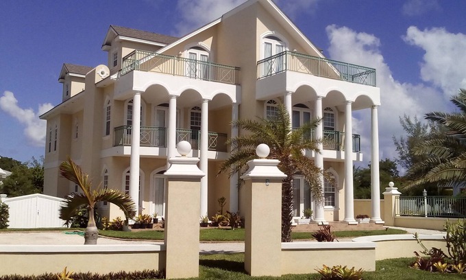 Truly an architectural gem. Two spacious balconies and a large porch to view the ocean from. Enjoy warm sunny days on the beach or lounging by the large saltwater swimming pool. Minutes from the spectacular Atlantis Casino and Downtown, walking distance to the bus stop and grocery store. With activities like reef snorkeling, jet skiing and tours of the island you'll never get bored. Or just relax in the jacuzzi, have a home cooked meal, or chill out with a tropical drink on the open air balcony while watching the ocean scenery. Have fun!